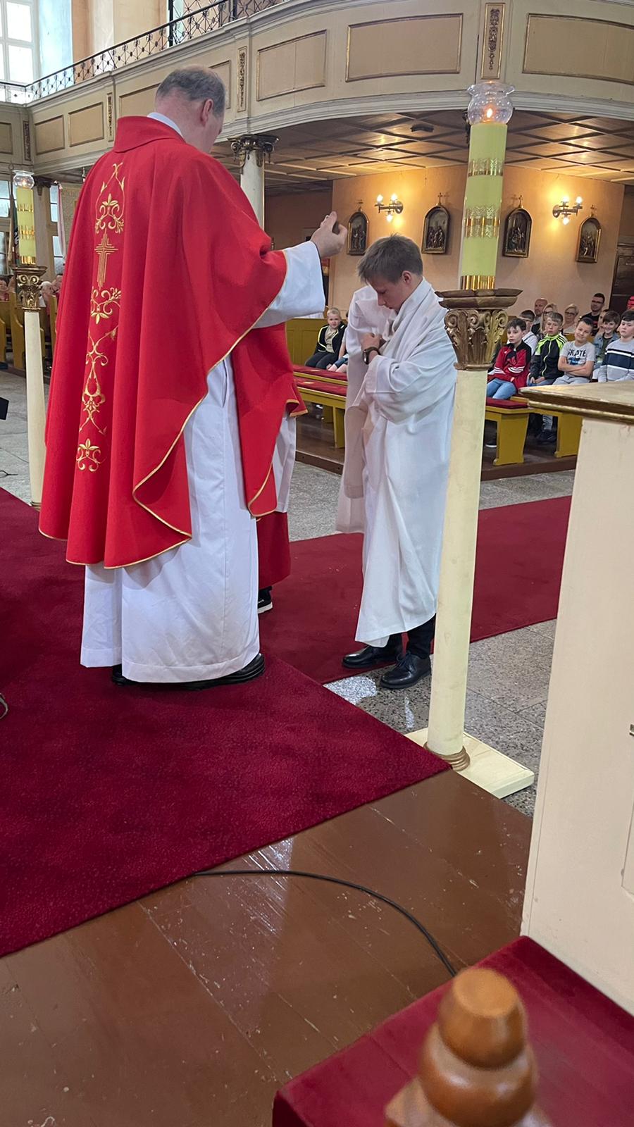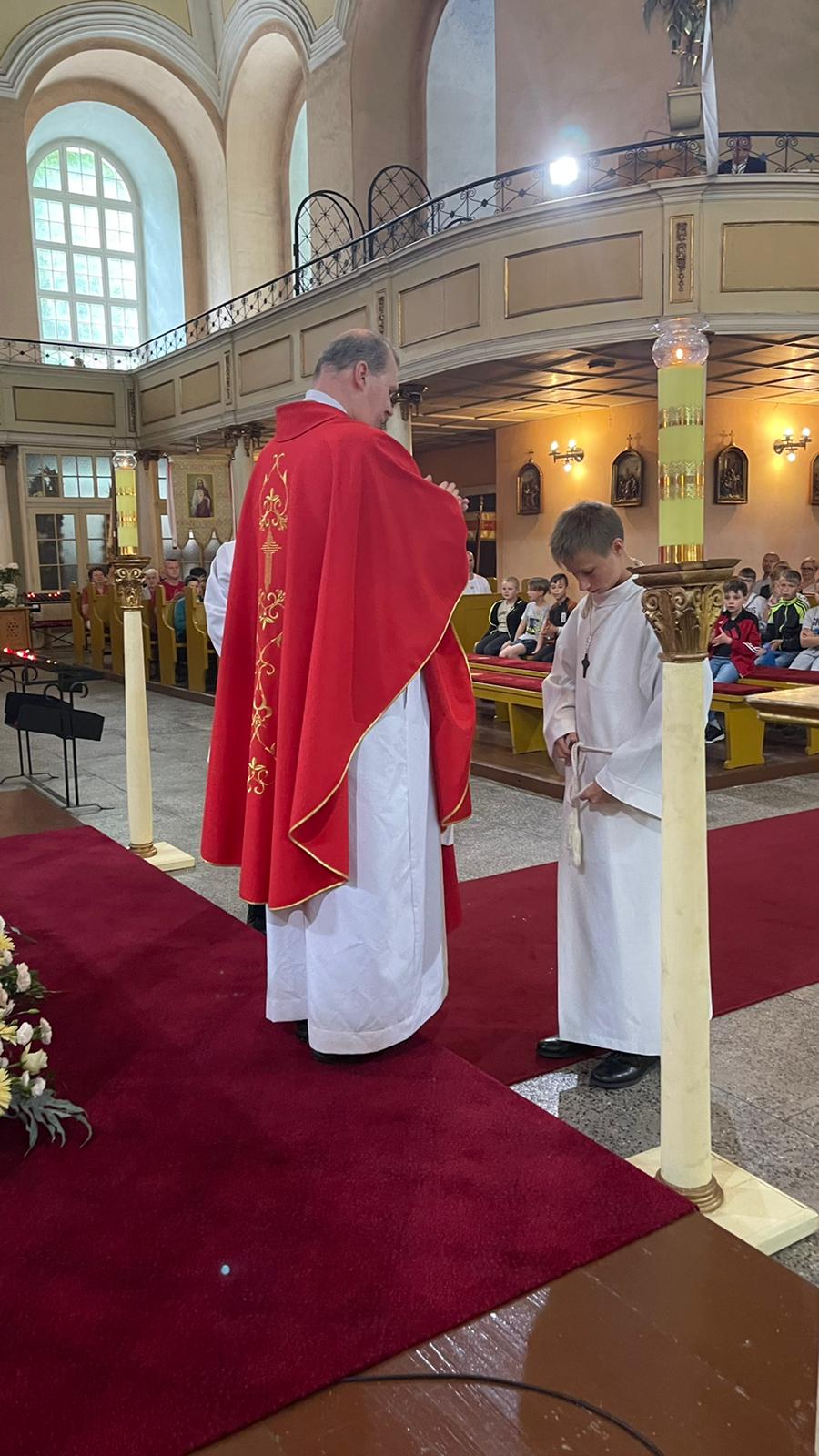 W niedzielę 5 czerwca 2022 r. w naszej wspólnocie parafialnej miała miejsce promocja nowych ministrantów i lektora. Do grona ministrantów po przygotowaniu i próbie zostali włączeni Emmanuel Sobiszewski i Paweł Tokarczyk. Grono lektorów powiększył Dominik Nowosad. Gratulujemy. Dziękujemy ks. Janowi Rajczakowskiemu za troskę i towarzyszenie wszystkim ministrantom.